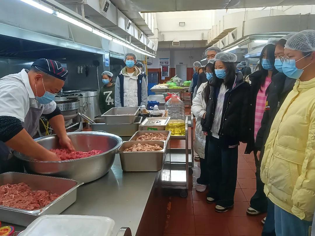 学生们在工作人员的指导下,亲自参与了洗菜、切菜和烹饪等实践活动。为了让每个同学都能获得亲身体验的机会,将同学分为红案和白案两个小组。红案组学生们拿起锅铲,尝试着翻炒菜肴,感受食材在锅中的变化。虽然手法略显生疏,但每个人的脸上都洋溢着兴奋的笑容。白案组的同学们则围站一团,手中轻捧着柔软的面团,眼眸中闪烁着对新知的渴望与好奇,仿佛这不仅仅是一次包子的制作,更是一场关于生活美学的探索。通过亲身体验,学生们深刻感受到了制作一顿美味佳肴的不易,也更加明白了“一粥一饭,当思来处不易”的道理。