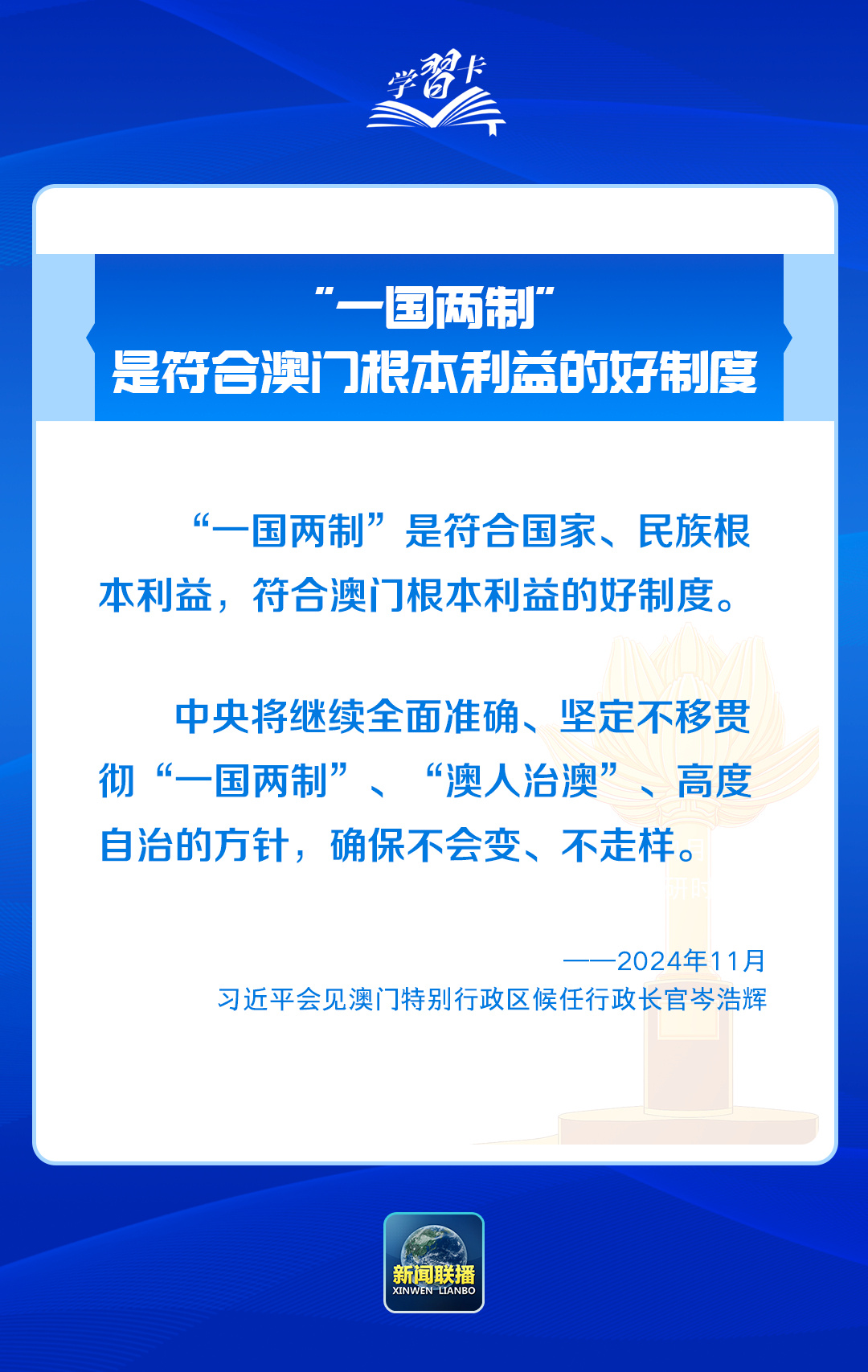 2024年12月20日,澳门回归祖国25周年。25年来,澳门发展日新月异,向世界展示了具有澳门特色的“一国两制”成功实践。
