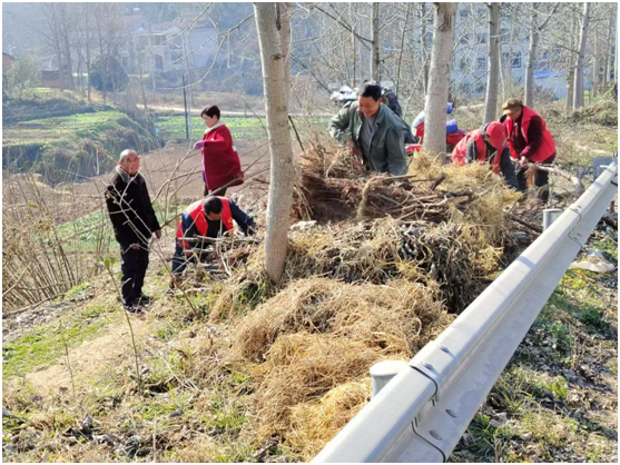 近日,澴潭镇二浪山村组织群众一家一户出一个劳动力,身穿红马甲,共同参与346国道沿线环境卫生整治工作。村两委全部参加、带头示范,清理“三堆两垛”、整治“三乱”,既起到了宣传带动作用,又共同缔造了清洁标准,效果很好。