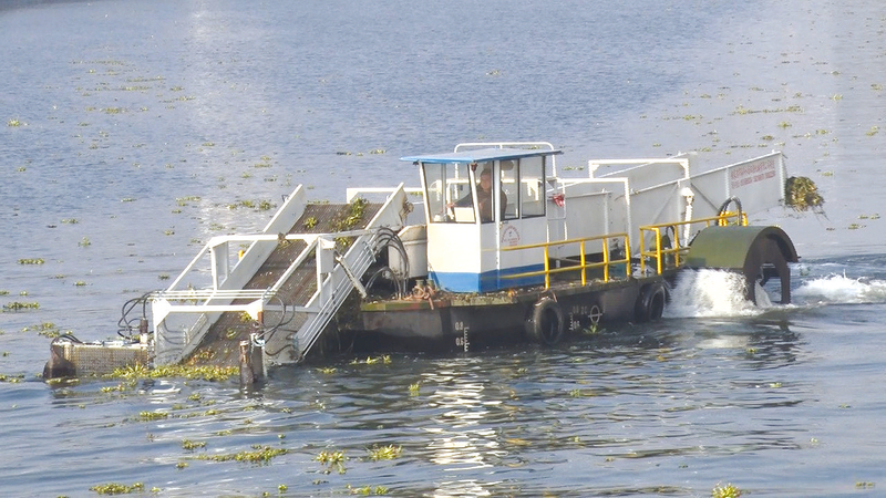 近日,广水市城管部门购置3艘全自动清漂打捞船,在该市滨河公园水域开展常态化清漂作业。工作人员集中打捞、清除水葫芦、水面垃圾等漂浮物,维护“水清、岸绿、景美”的生态环境。打捞后的漂浮物将及时拖运至垃圾填埋场,统一进行无害化处理,避免再次进入水域,造成二次污染。(随州日报通讯员郑伟、高晓涵摄)