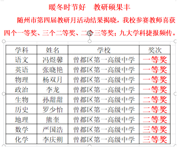 ——曾都一中在市第四届教研月活动中喜获佳绩
