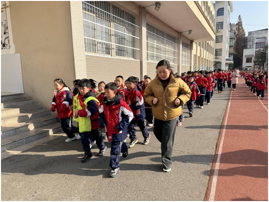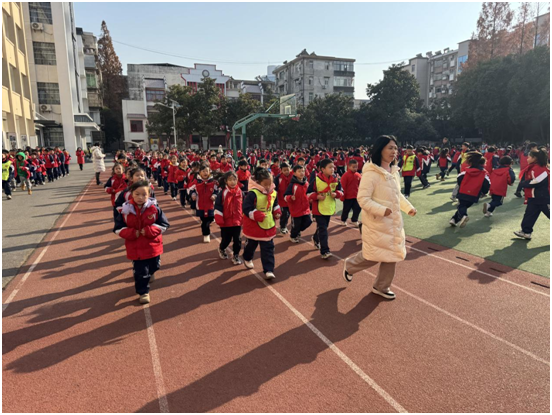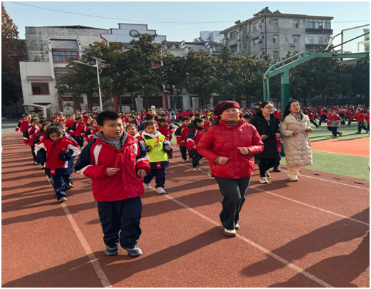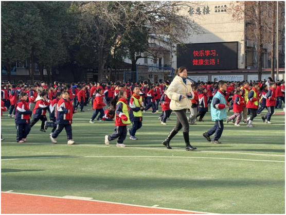 在曾都区实验小学,阳光体育锻炼时间到,伴随着欢快激昂的进行曲,操场上一片热火朝天的运动景象。同学们在老师的带领下开始了健身“三部曲”:《中国字 中国人》集体舞,孩子们认真专注,把对书法的热爱融进一招一式的手势舞动作里;《第九套广播体操》,师生同做,规范标准,在举手抬足和蹦蹦跳跳中感受生命的活力;健身花样跑,39个班级化身39列踩着卡点有序奔跑前进的“小火车”,大操场、小操场,绿茵场、塑胶跑道,校长领跑,老师带跑,同学们精神抖擞、步伐整齐,以铿锵有力的口号声展示着运动的快乐和班级魅力。