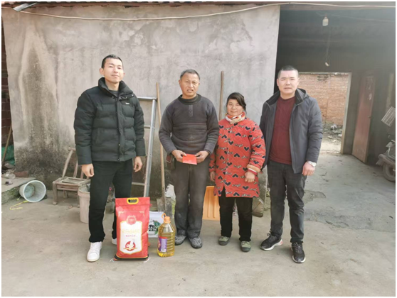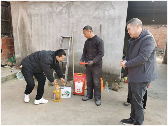 联强村脱贫户项先生家中有一位残疾妻子,还有两个孩子还在上学,家庭负担很重。当优秀共产党员郝经理得知其还未缴纳医疗保险时,主动找到联强村委会,希望开展一次爱心慰问活动。他带着2000元慰问金,一袋大米、一桶食用油、一箱牛奶亲自来到了脱贫户项先生家中,项先生接到这笔爱心款项时,泪眼汪汪地说到:“这么冷的天气还带这么多物资来看我们,医保问题也帮助解决了,一直担惊受怕,这要是生个大病该怎么办,劳烦你费心和牵挂,我感觉心里暖暖的,不知道该如何感谢你。”