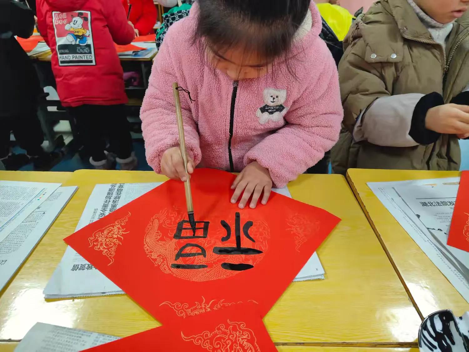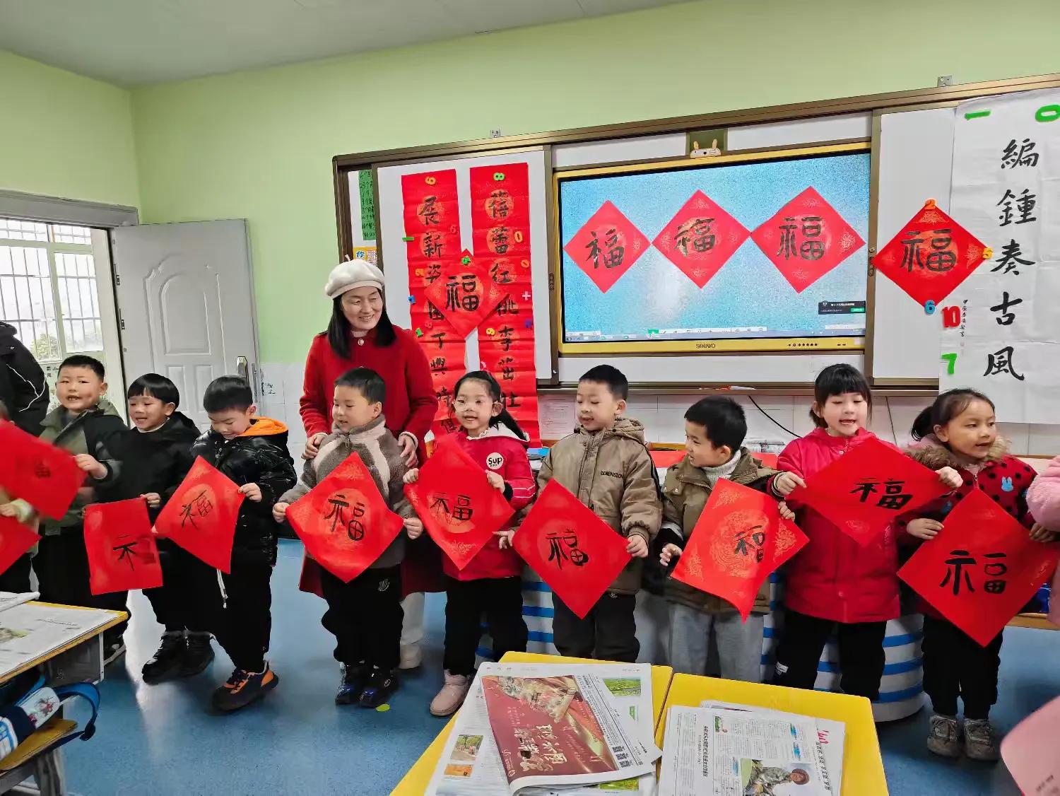 园长朱凌飞为府河镇中心幼儿园的小朋友带来了一节大班书法体验活动《新年送“福”》。书法是中国传统文化的精髓,是中华民族独特的文化表现形式。在幼儿园阶段,孩子们对世界充满好奇,对各种新鲜事物都充满探索的欲望,书法活动正是结合了孩子们的这一特点。在活动中,朱园长教孩子们认识了文房四宝:笔墨纸砚,欣赏了“福”字的楷书、隶书、篆书不同的写法,让孩子们体验毛笔在报纸和斗方上书写的奇妙感觉。孩子们经过几次练习,终于写出了一个个不同凡响的“福”字,并学会许多新年祝福的词语。这节书法体验课,孩子们在感受传统文化魅力的同时,也亲身体验了书法的艺术之美、中华的文字之美。
