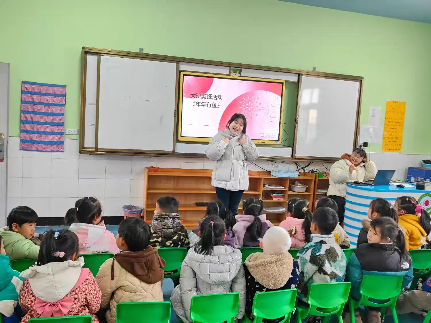 曹梦娇老师为府河镇中心幼儿园的小朋友们带来了一节大班剪纸活动《年年有鱼》。一张小小的纸,对孩子们来说也有着不小的挑战。曹老师通过图片和视频展示的方法,让孩子们了解到纸上画出小鱼的外轮廓和鱼骨位置的方法,在活动中,孩子们感受到了剪纸艺术的独特魅力,体验到了艺术创造所带来的乐趣和成就感。