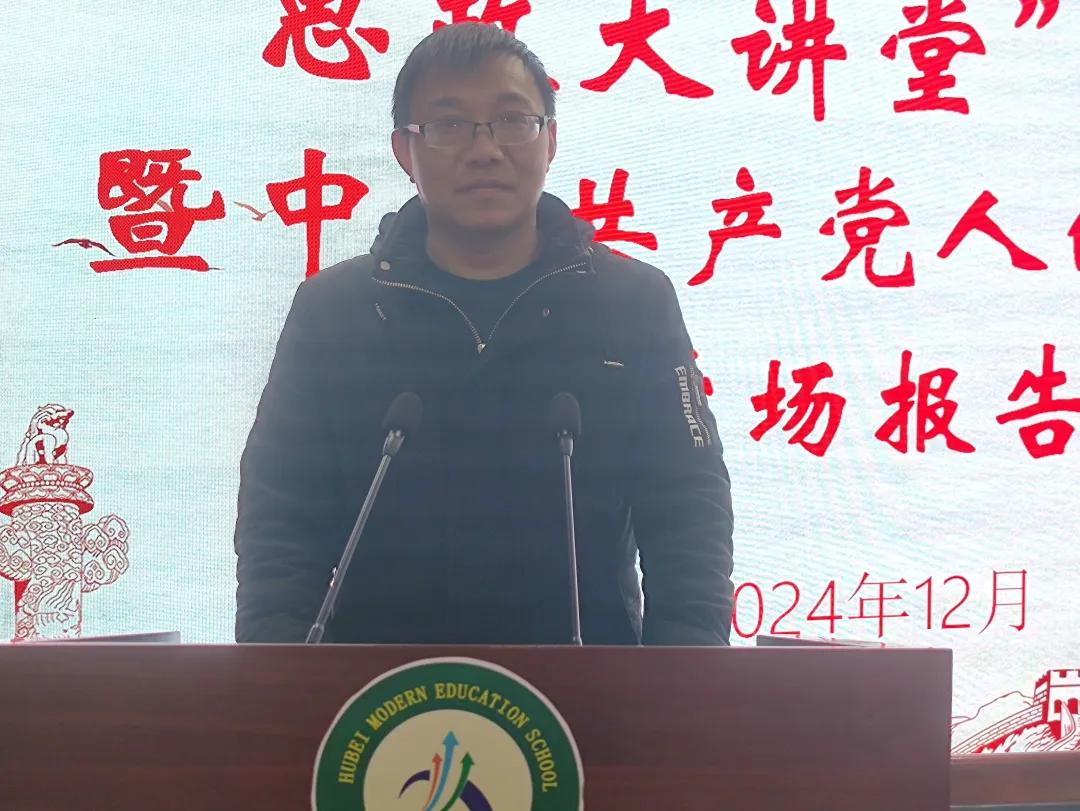 随州新闻网讯 (通讯员周飞、严国军、秦丽霞)为深入贯彻落实《关于深化新时代学校思想政治理论课改革创新的若干意见》文件要求,构建全员、全程、全方位的育人大格局,12月26日,湖北现代教育学校举行“思政大讲堂”启动仪式暨中国共产党人的精神谱系首场报告会。报告会通过将史实与视频相结合,深入浅出的为广大师生带来了一堂精彩绝伦的思政课。学校领导出席启动仪式,相关处室负责人、青年教师、党员教师、全体思政课教师以及学生代表150余人现场参加。