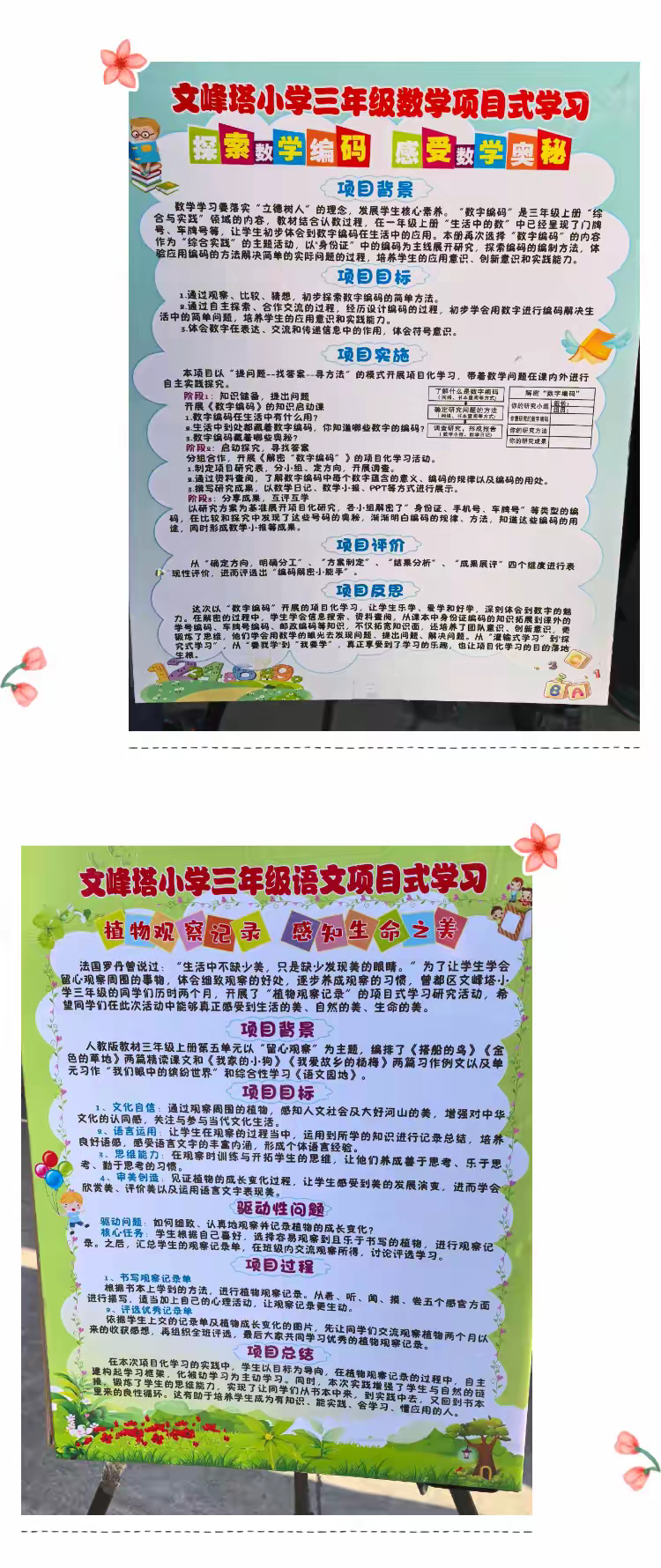 孩子们在参与项目化学习的过程中,获得成长,收获智慧,积淀能力,更学会了自我教育、合作团结、责任担当。虽然本阶段的项目式学习暂告一个段落,但是学习永远在路上,期待在项目式学习理论的指引下,文峰塔小学会继续乘风破浪,一同遇见更多别样的精彩!