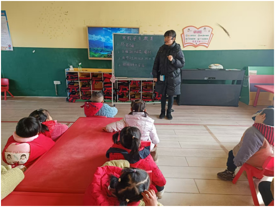 各班老师根据本班幼儿年龄特点,围绕消防安全、交通安全、用火用电安全、防范一氧化碳中毒、饮食安全、居家安全、习惯养成等内容通过观看视频、情景表演、认识安全图标等多种形式把安全教育融入其中。使幼儿在有趣的活动中提高安全识,增强自我保护能力。同时召开家长会,向家长发放“寒假安全温馨提示”和“寒假安全告知书”书,提醒家长们进一步做好幼儿寒假期间的各项安全监护工作,让“安全”二字深入每位家长心中。