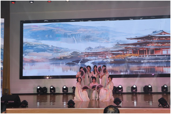 “谋篇布局谱新篇”率先登场,宛如一阵清新的春风,吹开了学校发展的新篇章。由新入职的女大学生们与学生携手带来的《凤歌鸾舞》,那灵动的舞姿似穿越古今的精灵,在梦幻与现实间轻盈跳跃,将古典韵味与现代活力完美融合,瞬间点燃了全场的热情。雷晨羽同学的独唱《传奇》,宛如天籁之音,深情的歌声在校园上空回荡。课本剧《草船借箭》更是创意十足,同学们的精彩演绎让经典故事焕发出新的活力,那些精心设计的幽默“梗”和接连不断的包袱,逗得台下师生前仰后合,掌声与笑声交织一片。