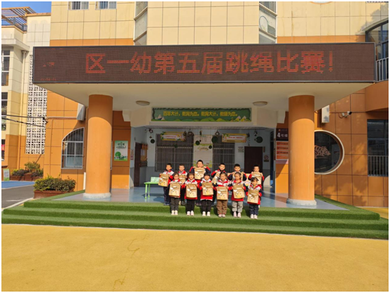 经过激烈的角逐,这40 个小朋友分别斩获了本次跳绳比赛的一二三等奖。他们站在领奖台上,脸上洋溢着自豪与喜悦,手中的奖状和奖品是对他们这段时间努力训练的最好见证。这些小小的身影,在跳绳的过程中不仅锻炼了身体,更培养了坚韧不拔的毅力和勇于挑战自我的精神。而这一切,也正是在当前优化营商环境的大背景下,幼儿园积极致力于为孩子们创造优质教育体验的生动体现。此次比赛的成功举办,无疑为幼儿园的发展增添了一抹亮丽的色彩,也为孩子们的未来奠定了坚实的基础,激励着他们在成长的道路上继续奋勇前行,去追逐更加璀璨的星光。