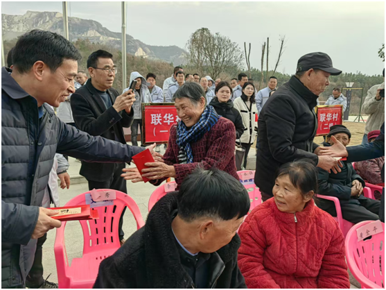 活动中,吴山矿业董事长林兴龙讲到“企业的发展绝不应以牺牲环境和村民利益为代价,今年吴联、吴随两座矿山入围‘湖北省绿色矿山’名单,更是离不开全体村民的全力支持。”年之将近,为表达对村民的感谢,在活动现场对全体老人发放慰问金1000元。联华村党支部书记李秀奎讲到:“我们会继续凝聚各方力量,在政府的坚强领导下,与吴山矿业、吴联、吴随矿业、格耀公司携手共进,为联华村创造更加美好的明天,让每一位村民都能享受到发展带来的红利。”