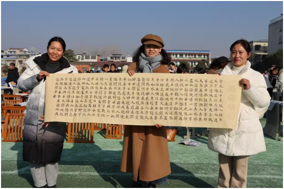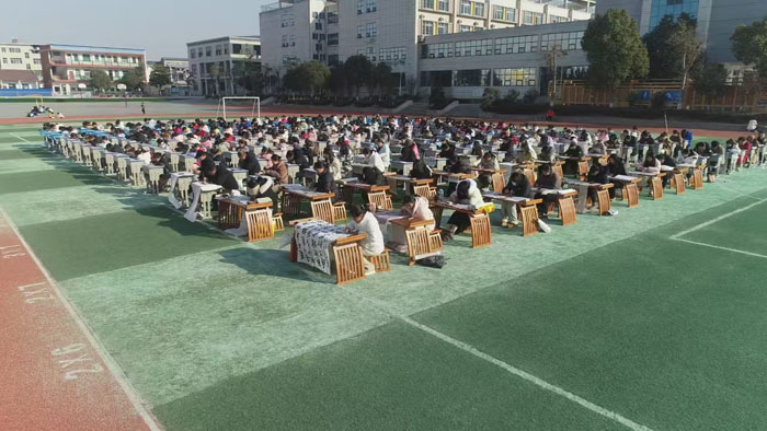 现场师生齐聚一堂,全神贯注地挥毫泼墨。同学们眼神专注,稚嫩的小手紧握毛笔,一笔一划书写着对汉字的热爱。老师们笔法娴熟,行笔流畅,展现出深厚的书法功底。楷书端庄秀丽,行书飘逸洒脱,隶书古朴厚重,各种字体熠熠生辉。整个赛场弥漫着浓郁的文化气息,书写纸、墨香与专注的神情相互交融,构成了一幅动人的画面。