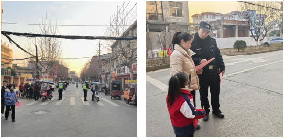 为确保镇区交通安全,洪山镇综合执法中心、洪山镇派出所、洪山镇市场监管所等单位携手合作,在学生放学这一人流、车流聚集的高峰时段,于镇一中附近开展“两车”(摩托车、电动车)交通安全宣传活动。