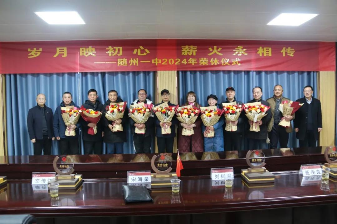 随州新闻网讯 (通讯员蒋随鄂、汪建铁)1月10日下午4时,随州一中图书馆四楼会议室内温情涌动,一场以 “岁月映初心, 薪火永相传” 为主题的2024年荣休仪式在此隆重举行。学校领导与教师代表齐聚一堂,共同向2024年光荣退休的十二位教职工致以崇高的敬意。