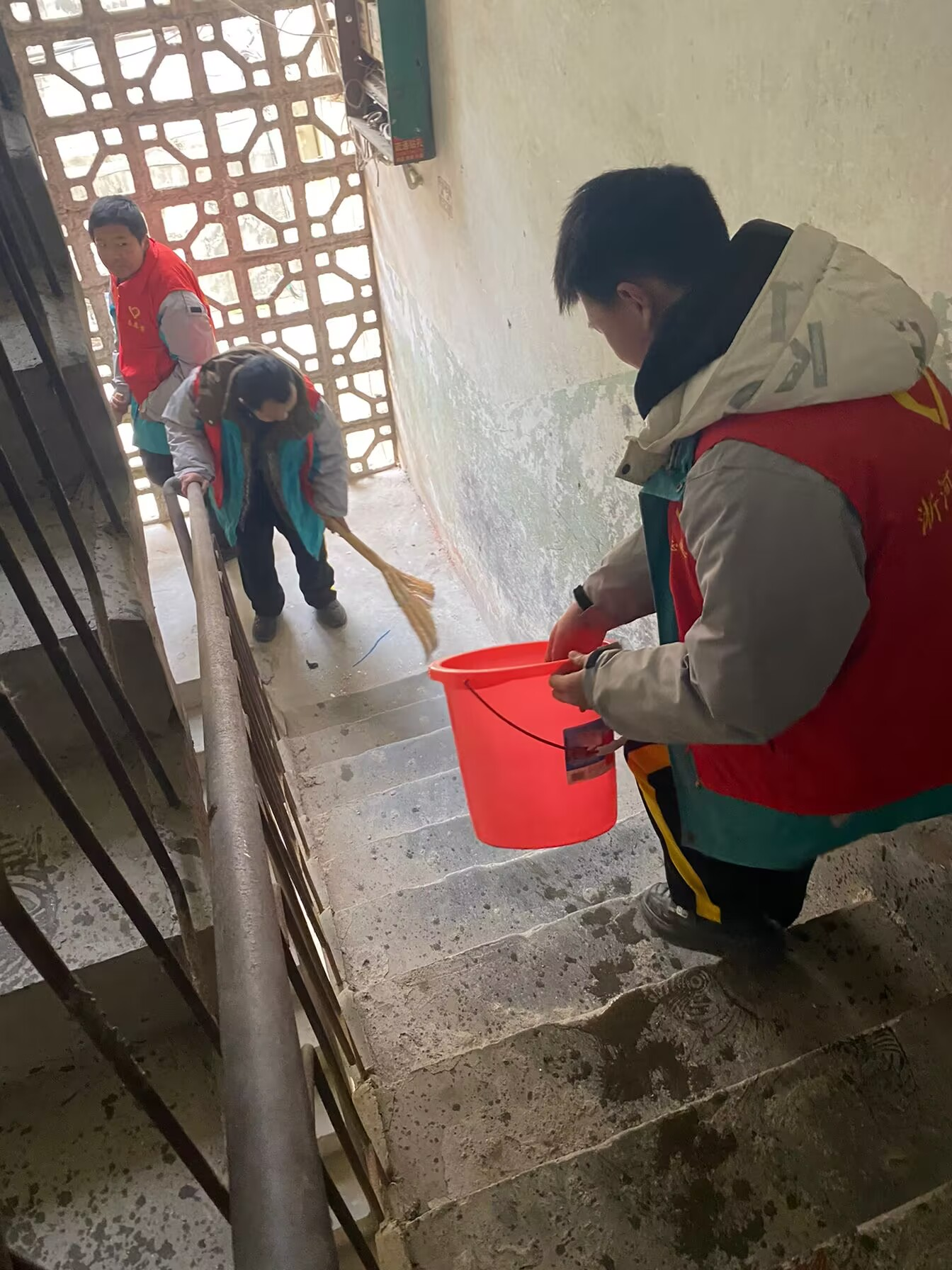 学生们团结一心,为打造一个更美好的校园贡献自己的力量。清除“牛皮藓”时,大家都积极参与,有的拿着扫帚仔细清扫楼梯的垃圾和灰尘,还有的在仔细擦拭路灯上的污渍,有的拿着拖把认认真真地拖地。他们不怕脏、不怕累,用自己的实际行动诠释着环保的意义。