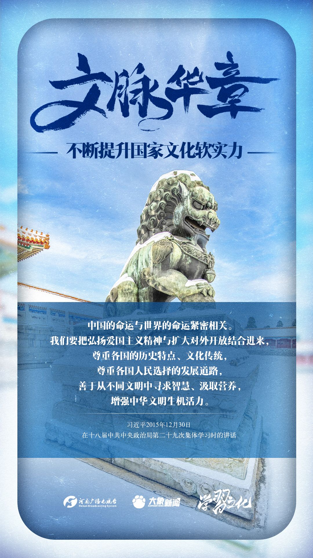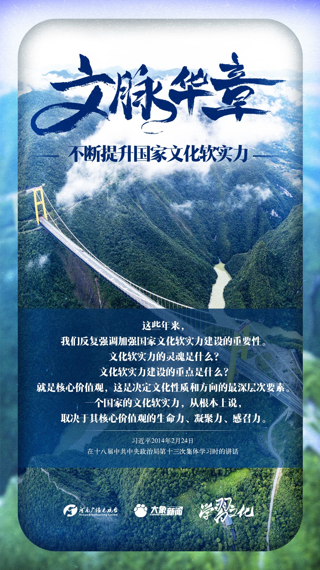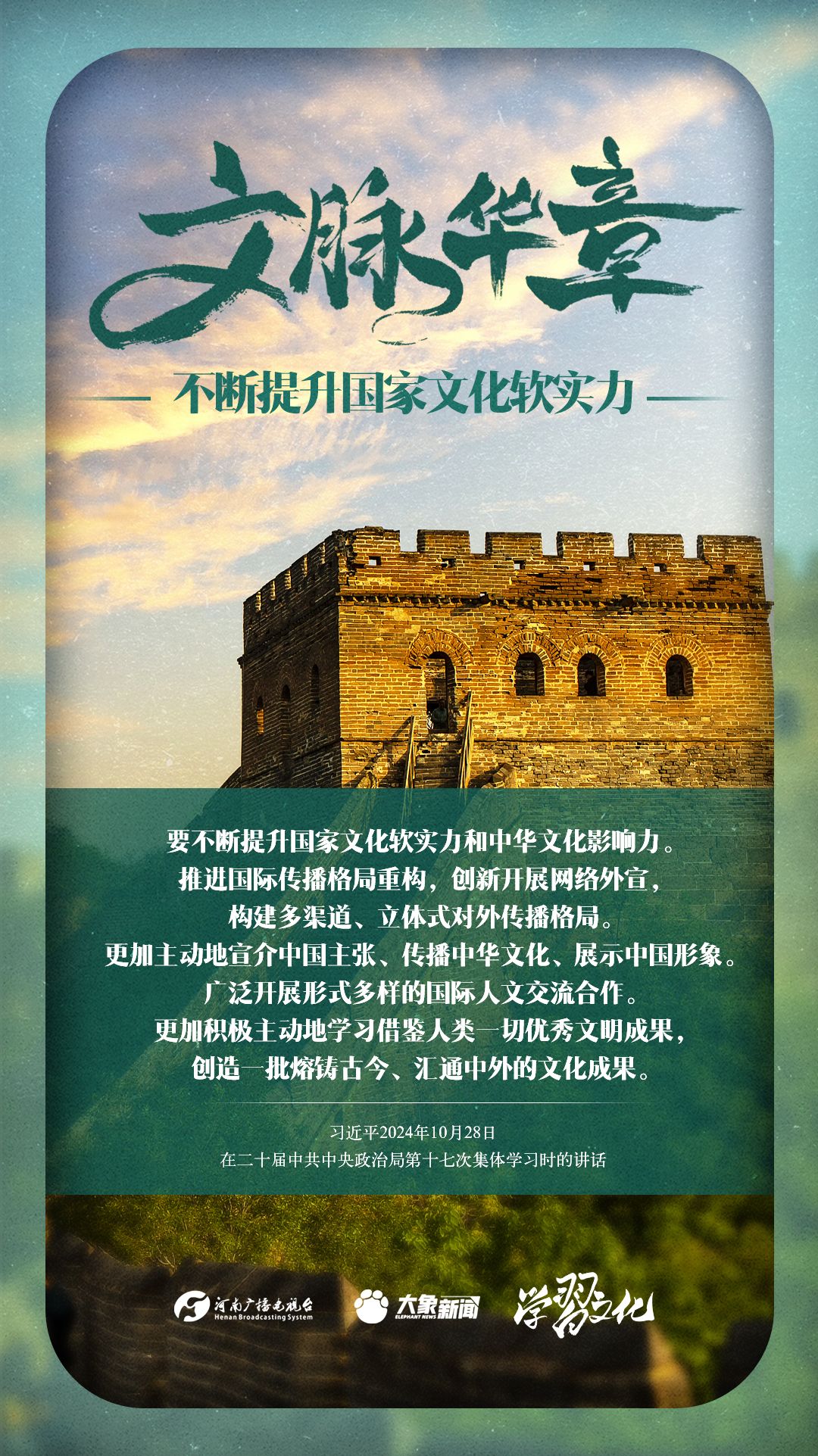 文化软实力集中体现了一个国家基于文化而具有的凝聚力和生命力,以及由此产生的吸引力和影响力。党的十八大以来,习近平总书记站在党和国家事业发展全局的战略高度,就提高国家文化软实力阐发了一系列重要论述。我们一起学习。