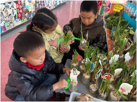 活动中,教师从孩子的视角出发,追随孩子的兴趣,从课程缘起、内容选择、实施路径、课程反思等方面,采用图文并茂的形式,述说着探索过程中的精彩片段,将一个个贴近幼儿生活的“班本课程故事”娓娓道来:《“豆”你玩——水培豌豆生长记》、《风信子精灵的绽放旅程》、《我们的“菇”事》、《小脚丫,大“足”迹》等11个班本课程故事,将五大领域贯穿在日常生活、游戏、集中教学和家园共育等活动中,通过课程活动让幼儿在直接感知、实际操作和亲身体验中获得新经验,生动诠释了老师们在课程实施中的教育智慧和专业成长。