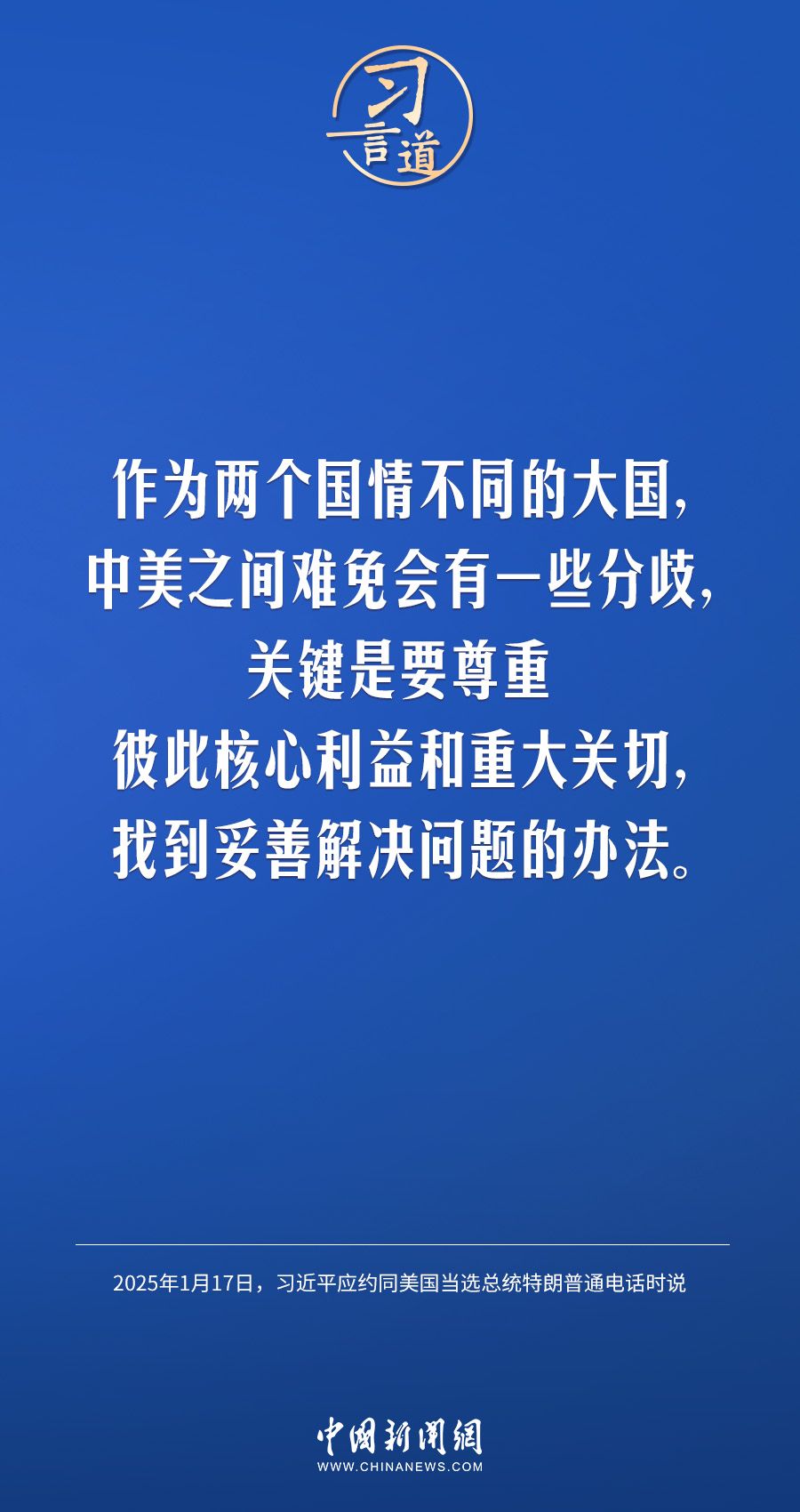 1月17日晚,国家主席习近平应约同美国当选总统特朗普通电话。习近平指出——