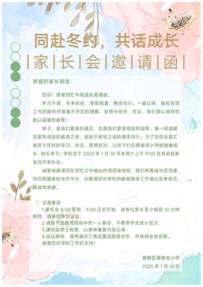 此次家长会的成功举办,不仅体现了蒋家岗小学“家校共育,促进学生全面发展”的教育理念,加深了家校之间的沟通与理解,更为学生的寒假生活和新学期的学习规划提供了明确的方向。在未来的日子里,让我们携手奔赴冬约,家校共话成长,共同为孩子的健康成长和美好未来贡献力量。