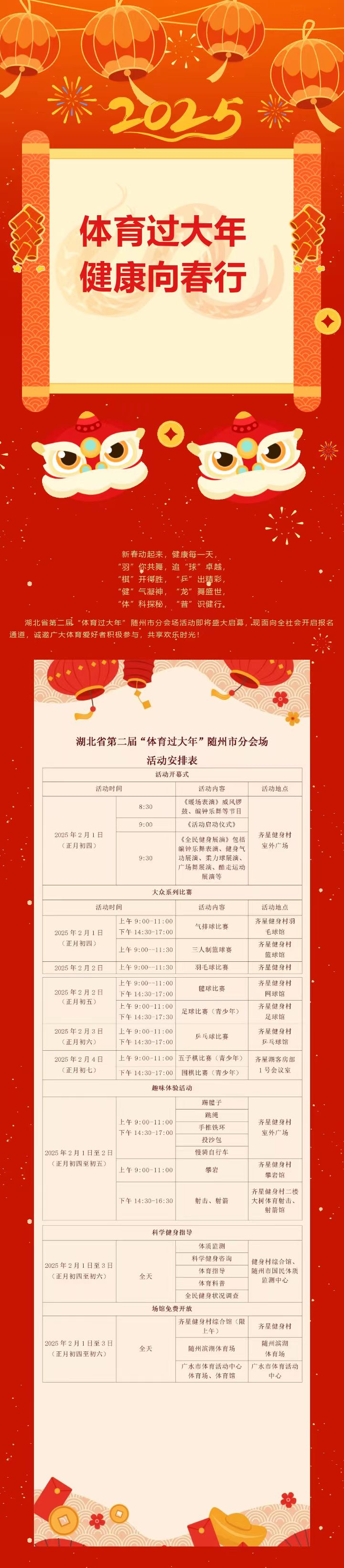 “体育过大年 健康向春行”——湖北省第二届“体育过大年”随州市分会场活动报名通道开启