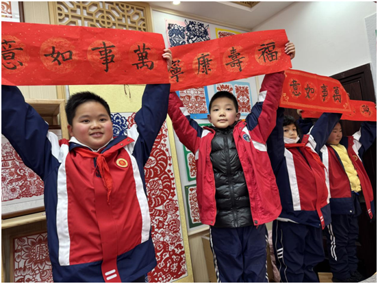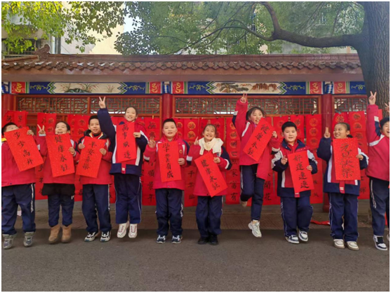 孩子们在书写对联中,展示了自己在软笔书法上取得的阶段性成果和进步,同时,在担任家庭和学校“文墨”使者的过程中,对中华传统文化春节习俗有了进一步了解和认识。“点横竖撇捺”,传承优秀传统文化;提笔写春联,培植深厚的家国情怀;家校携手共建共育,营造了良好的营商环境。