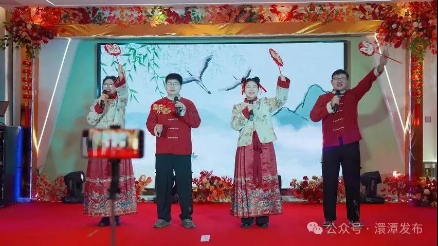 这不仅是油茶产业发展的交流会,也是一场充满年味的新春聚会。精彩的节目表演将现场氛围推向高潮。活力四射的舞蹈、动听的歌曲串烧、幽默诙谐的相声......唤起了大家浓浓的乡情。这些节目均由澴潭镇政府机关年轻干部自编自演,他们利用业余时间精心排练,为现场嘉宾送上了一份诚意满满的新春祝福。