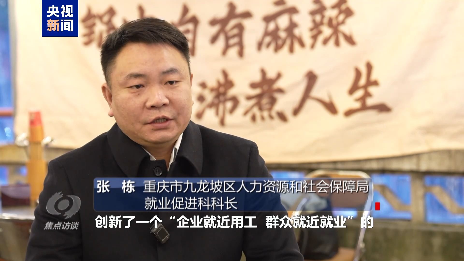 重庆市九龙坡区人力资源和社会保障局就业促进科科长 张栋:就业是最基本的民生,我们贯彻总书记的殷殷嘱托,创新了一个“企业就近用工,群众就近就业”的“双就近”服务改革。这些火锅店的员工相对来说年纪比较大。我们通过数字就业系统就自动匹配上了,老板很快找到这些员工,而这些孃孃也很快找到工作。其实我们工作的目的说白了,就是让群众有活干,有钱赚。