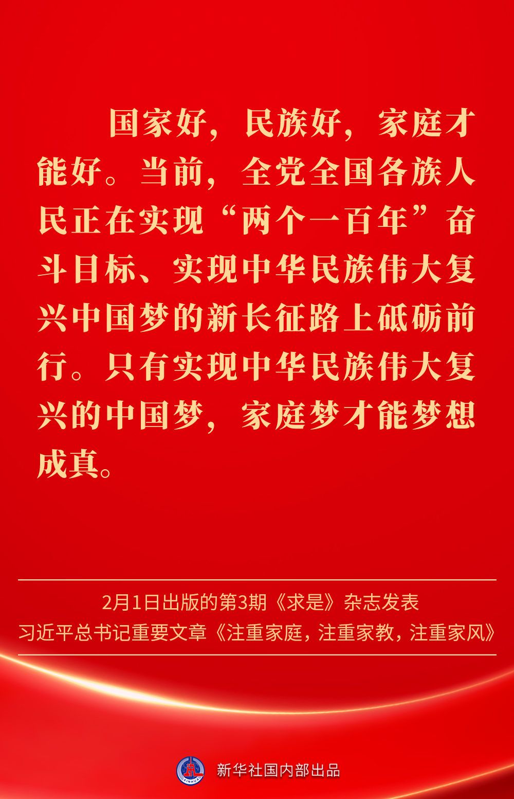 万家团圆共庆新春佳节之际,2月1日出版的第3期《求是》杂志发表习近平总书记重要文章《注重家庭,注重家教,注重家风》。为什么要注重家庭、家教、家风?如何做好家庭文明建设?习近平总书记这样阐述——