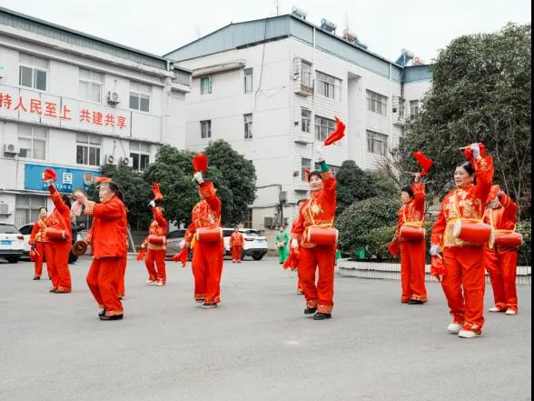 上午8时58分,文化活动正式上演。在政府机关大院,来自基层社区的大娘阿姨们,排着整齐的队伍,穿着华丽的盛装,随着铿锵的鼓点翩翩起舞。有小丑的诙谐,有莲船的喜庆,还有催人奋进的锣鼓声声。机关干部职工在融融春风中与演出队伍互致祝词,空气中到处洋溢着喜庆与祥和。