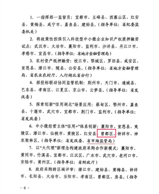 日前,湖北省优化营商环境领导小组通报表扬2024年全省优化营商环境重点领域改革事项及成效明显地区,曾都区市场监管局2项改革事项上榜,其中纳入国家试点1项、省级改革1项。