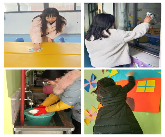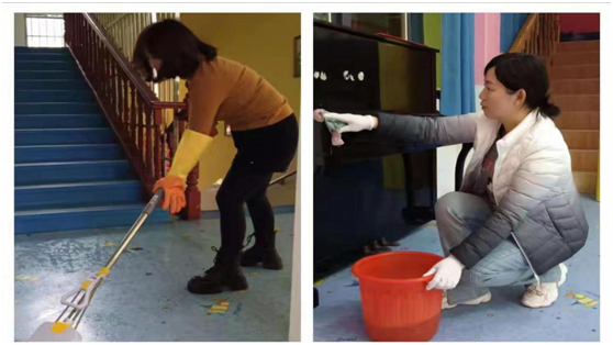老师们对园所环境进行全面卫生消毒,对幼儿园活动室、走廊、户外操场、盥洗室等进行清洁、消杀,整理,对室内外角落处进行打扫。户外大型设施设备等一个也不落下,经过努力“奋战”,园所呈现出整洁亮丽、活泼清新的开学新气象。