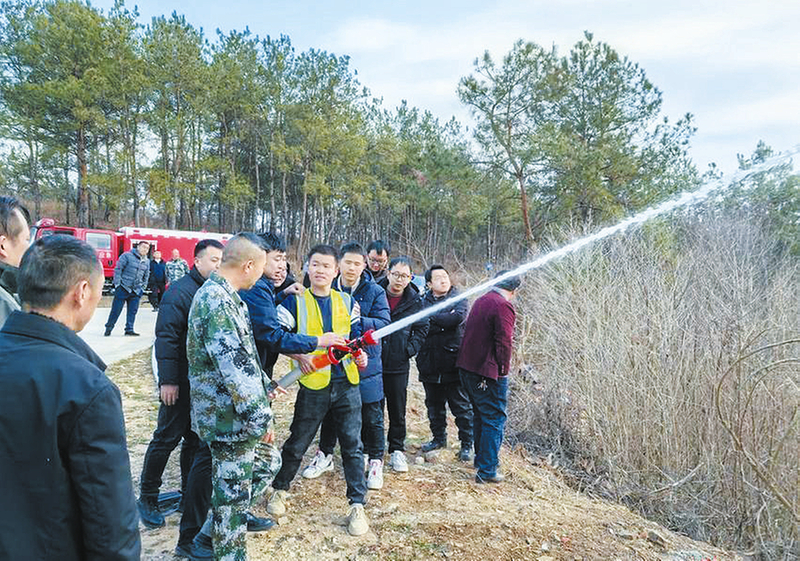 2月13日,广水市应山街道办事处组织16个社区相关人员开展了消防安全灭火应急演练,进一步增强社区居民的消防安全意识,提高社区干部的消防应急能力。图为参练人员在户外开展干粉灭火器、风林灭火器使用演练。(随州日报通讯员高晓涵、李莉摄)