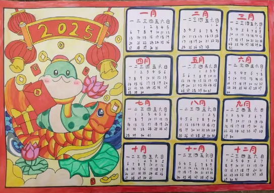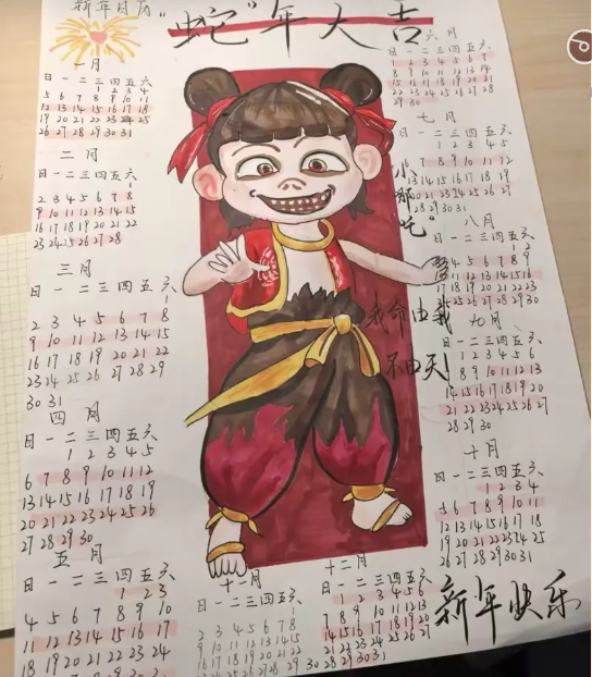 我的时间我做主,关于时光的年轮能不能让我们自己来绘制呢?只见孩子们动手动脑,各施所能,把数学知识和生活结合起来,与美术、手工劳动等学科融合,巧手巧思,在小小的纸片上制作出了属于他们独有的蛇年创意年历。细节见真章,灵动的色彩搭配及恰到好处的画面构图都完美诠释了他们绝佳的动手能力和独到的设计思路,充满新年氛围和艺术气息。时间镌刻崭新年轮,让我们一起书写耀眼华章!