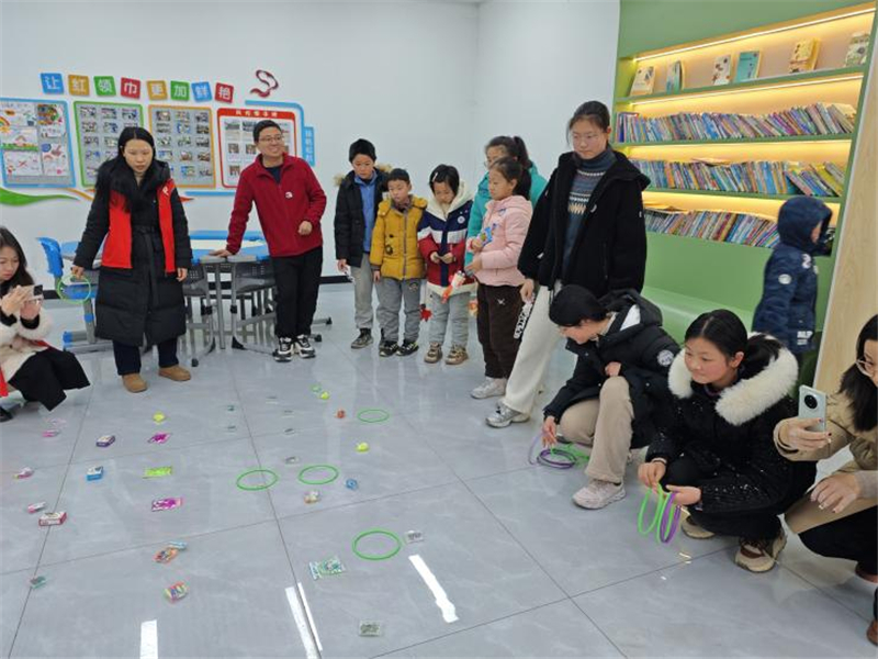 游戏互动环节,孩子们兴奋地参与积分套圈圈游戏,他们手持圈圈,或站或蹲,全神贯注地瞄准目标,每一次投掷都伴随着紧张与期待。每当圈圈稳稳套中目标,人群中就会爆发出一阵阵欢呼声,孩子们更是兴奋得手舞足蹈,相互击掌庆祝。志愿者在一旁忙碌记录着积分,不时为孩子们加油鼓励,并为获奖者颁发奖品。整个现场充满了欢声笑语,孩子们在游戏中学会了合作与分享,度过了一个有意义的元宵佳节。