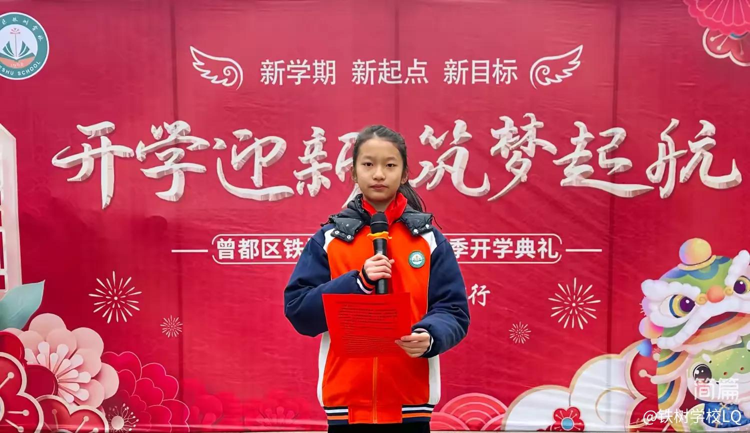 学生代表六二中队徐香玉同学对新学期作出了自己的表态,期盼同学们都能养成良好的行为习惯,认识自我、相信自我、发掘自我,成长为更优秀的铁树学子。