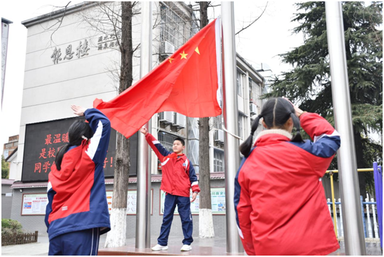 首先举行升旗仪式。伴随着雄壮的国歌声,鲜艳的五星红旗在肃穆的队礼中冉冉升起。