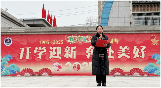 开学典礼上,东关小学党支部书记、校长平静发表了热情洋溢的致辞。她回顾过去一年,学校在教育教学、校园文化及特色发展等多领域成果斐然,对全体师生的辛勤耕耘予以高度肯定。值此东关小学建校120周年的重要时刻,她为新学期精心擘画蓝图,并向全体学生送上 “志向”“勇气”“学习”“运动”“创新” 五颗特殊 “种子”。她深情期许,在新的学期同学们能播撒希望,如 “巳火” 般热烈忠诚、生生不息,像种子一样深深扎根、茁壮成长,在新时代的奋进之路上,让少年 “巳” 火代代传承,照亮未来。