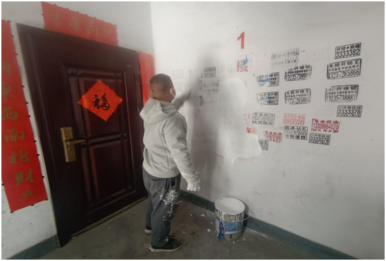 志愿者们不畏辛劳,手持铲子、喷水壶、涂料桶等工具,穿梭在社区的每一个角落。他们细心地铲除着每一张小广告,用涂料覆盖着每一处被小广告破坏的墙面。经过多日的连续奋战,整治行动取得了令人瞩目的成效。社区内的墙面、公共设施以及居民楼道上的小广告已基本被清除干净,社区环境焕然一新,重新焕发出了勃勃生机。