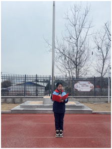 优秀学生代表孟子涵上台发言,她呼吁同学们:一年之计在于春,一日之计在于晨,新学期让我们给自己定个目标吧,全身心地投入去实现它!