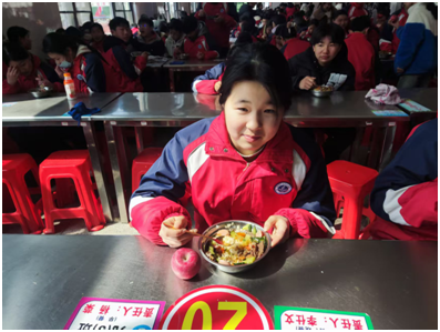 “食堂的饭菜好不好吃?”我在陪餐时随意问了一下身边就餐的学生。八年级学生解奕扬指着碗里的饭菜笑容满面的点头说:“真的很好吃。”