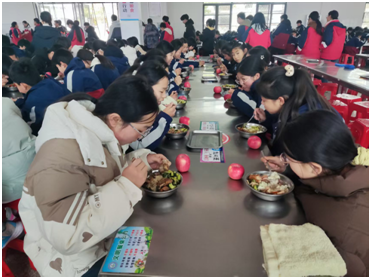 随州新闻网讯 (通讯员王卜东)2月25日12:15,正是曾都区何店初级中学师生就餐时。餐厅现场井然有序。
