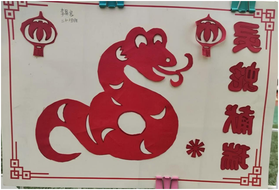 蛇年灯笼高高挂。孩子们利用废旧材料,制作出形态各异、色彩缤纷的蛇年灯笼。一盏盏灯笼,承载着孩子们对新年的美好祝愿,也为校园增添了浓浓的节日气氛。