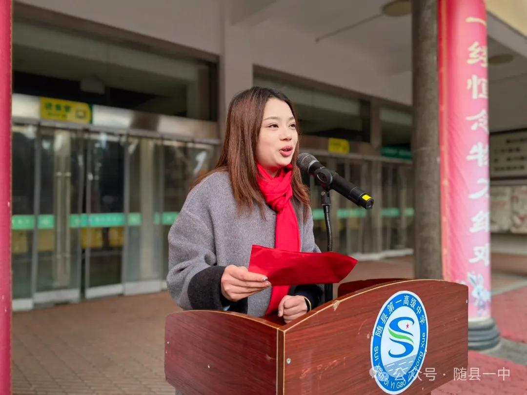 “再过一百天,同学们就要踏上高考的战场,去迎接人生中的第一次重大挑战。每个人都不是旁观者,而是这场战役的主角。而百日冲刺,就是打破不可能的战场,接下来让我们共同开启新的征程,吹响冲刺的号角。”上午8:08分,主持人彭依媛老师以激昂之声宣告:“百日征程,此刻启航!”