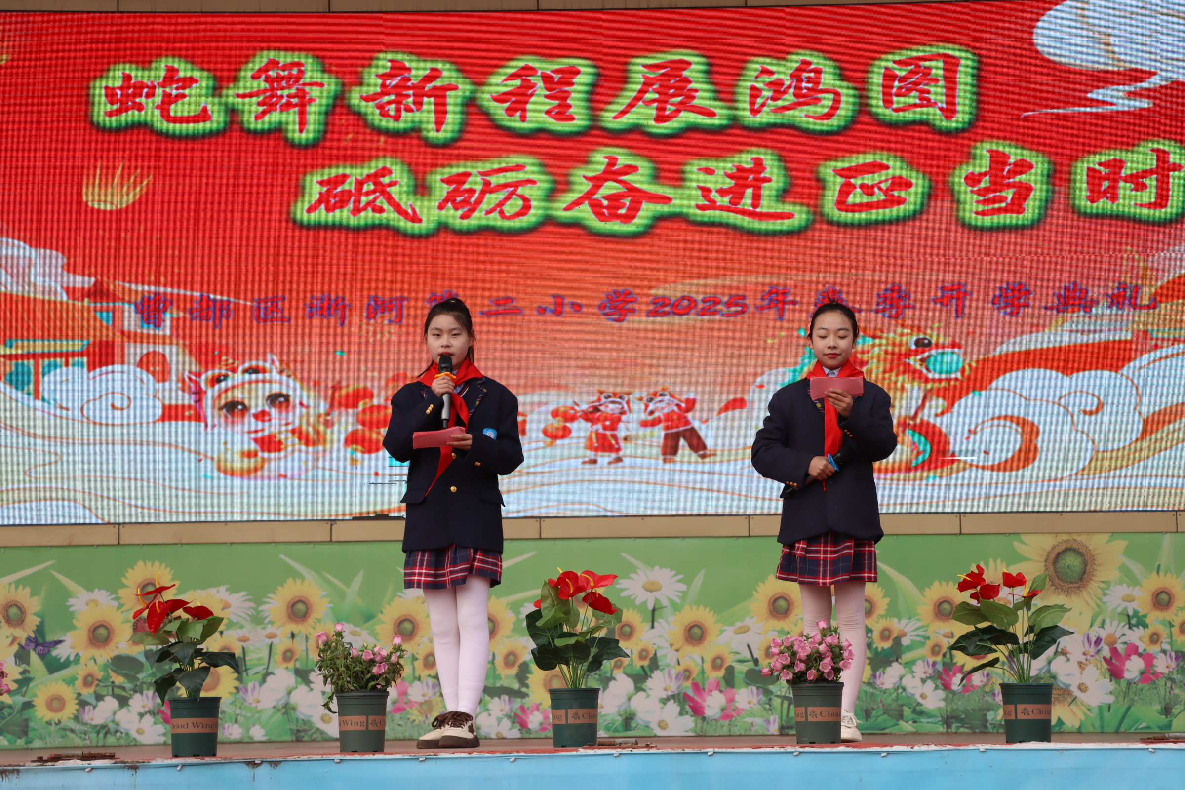 校长叶主望在开学典礼上致新春贺辞,向老师、家长、同学们送上了美好的祝福。同时,他以春节热门电影《哪吒2》和智能AI程序deepseek为切入点,鼓励同学们像哪吒一样,在成长道路上积极面对困难和挑战,成为一个勇敢正义、敢于创新的人。