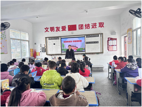 各班语文老师认真讲解本学期阅读计划以及共读推荐书目;教师们开展倡导启动仪式并向同学们发起号召和宣誓活动,点燃了师生的读书热情,促进学生从阅读中找到激励成长的力量,读经典,传承中华文化,让书香弥漫校园。