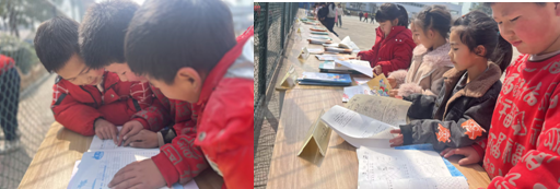 展评现场,一份份优秀作业按照科目排布,涵盖语文、数学、英语、科学、道德与法治等多个学科。