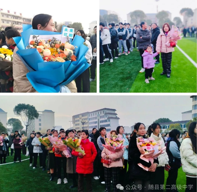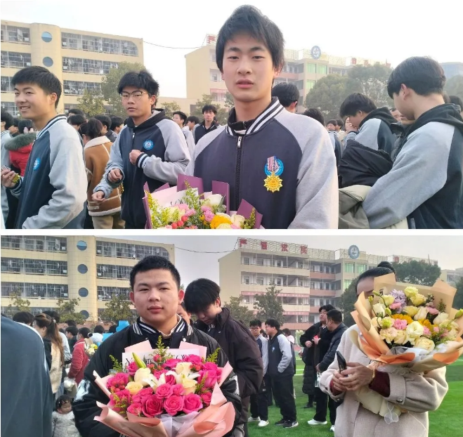 父母捧着浸满晨露的新鲜花束,在操场上静立成诗意的剪影。花瓣轻触少年颤抖的指尖,如同岁月温厚的吻,将“成长”二字镌刻进滚烫的掌纹。那些藏在皱纹里的故事,此刻化作温暖有爱意的阳光,落在少年肩头,折射出爱的宇宙。