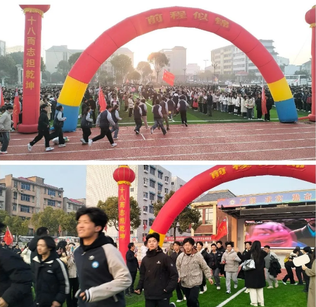 当激昂澎湃的旋律响彻操场,少年们踏着自信的节奏奔向彩虹门。红色拱门横跨天际,宛若神祇执笔绘就的契约。每一步都踏碎迷茫的茧,每一声呐喊都惊起梧桐叶的私语。守候在门后的教师们张开双臂,掌声如战鼓擂响,为这场青春的远征饯行。