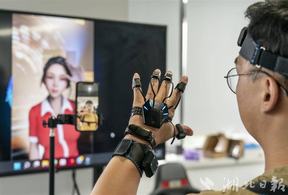 湖北青创园(光谷)示范园内的灏存科技公司,研发人员正在测试实现人机交互的可穿戴型数据手套和全身动态捕捉设备。
