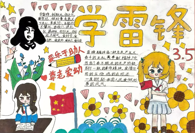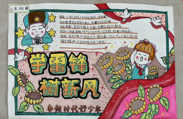同学们以笔为媒介,以纸为舞台,用细腻流畅的线条、绚丽缤纷的色彩,生动鲜活地勾勒出雷锋的感人事迹。每一幅手抄报,都饱含着同学们对雷锋叔叔深深的钦佩之情,字里行间抒发着对雷锋精神的崇高敬意。这不仅是一次艺术创作的展示,更是一场精神传承的接力!